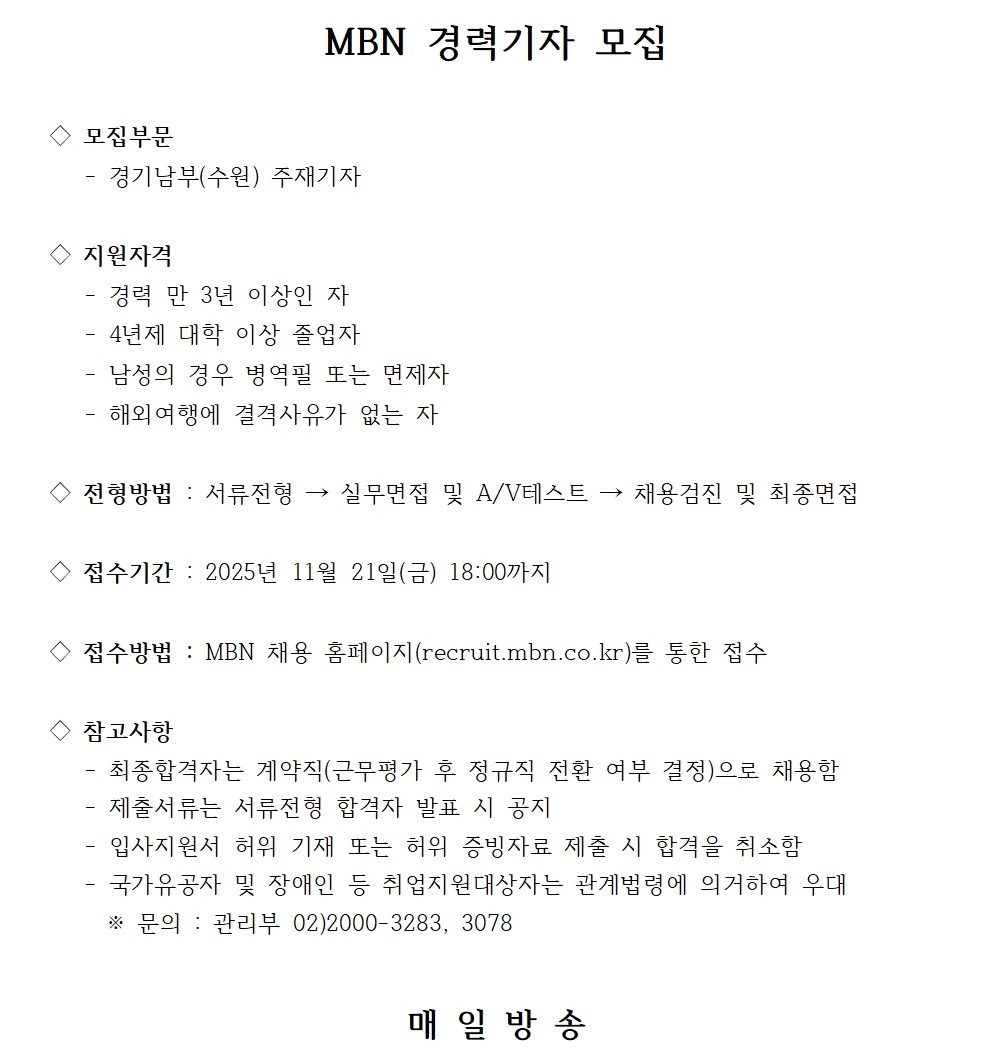 MBN 경력기자 모집